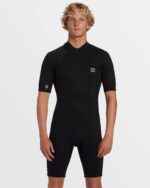 This Foil Collection short-sleeve springsuit from Billabong delivers stretch, comfort and thermal retention for warm water activities. The 2/2mm thick partially recycled neoprene foam and durable nylon blend exterior keep you protected from the elements, while the silicone stretch jersey interior and flatlock seams deliver freedom of movement. Featured here in the Black colorway.