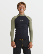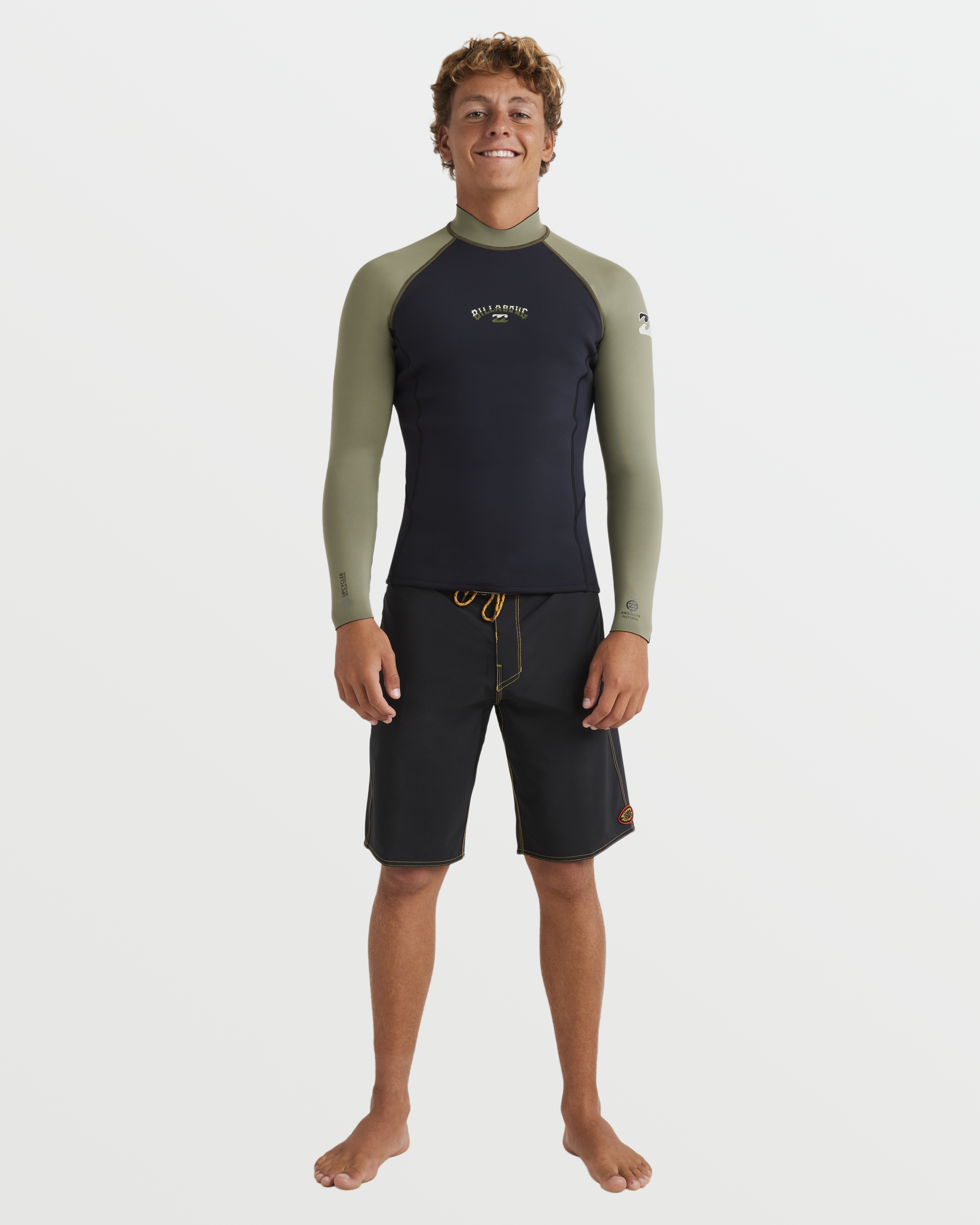 Breathe new life into sustainable style with Our Billabong recycled, Zipperless jacket. Crafted from natural rubber and soy oil, this stretchable wonder boasts reinforced seams to move with you through every adventure. Water-resistant, durable and unbelievably comfortable for the earth-conscious athlete. Featured here in the Military colorway.
