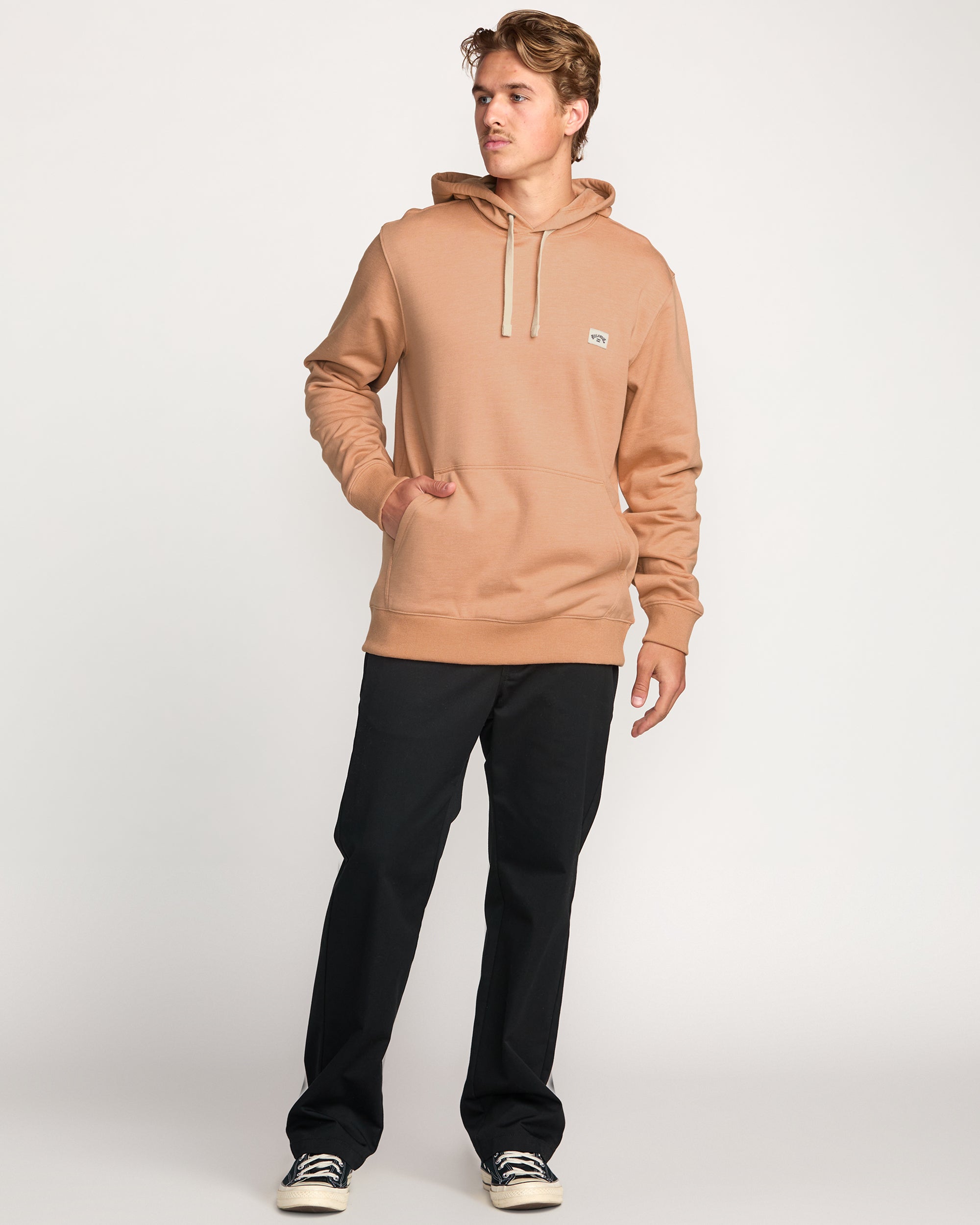 Our All Day Sweatshirt means business with a classic regular fit and cozy cotton blend fleece. The front pouch pocket keeps essentials close, while a woven chest label adds a subtle finishing touch. Featured here in the Pink colorway.