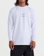 The All Day Wave Loose Fit Long Sleeve Surf Tee is a hybrid jersey rash guard, with a hooded neck and 50+ UV protection. Sun safe and comfortable. Featured here in the White colorway.