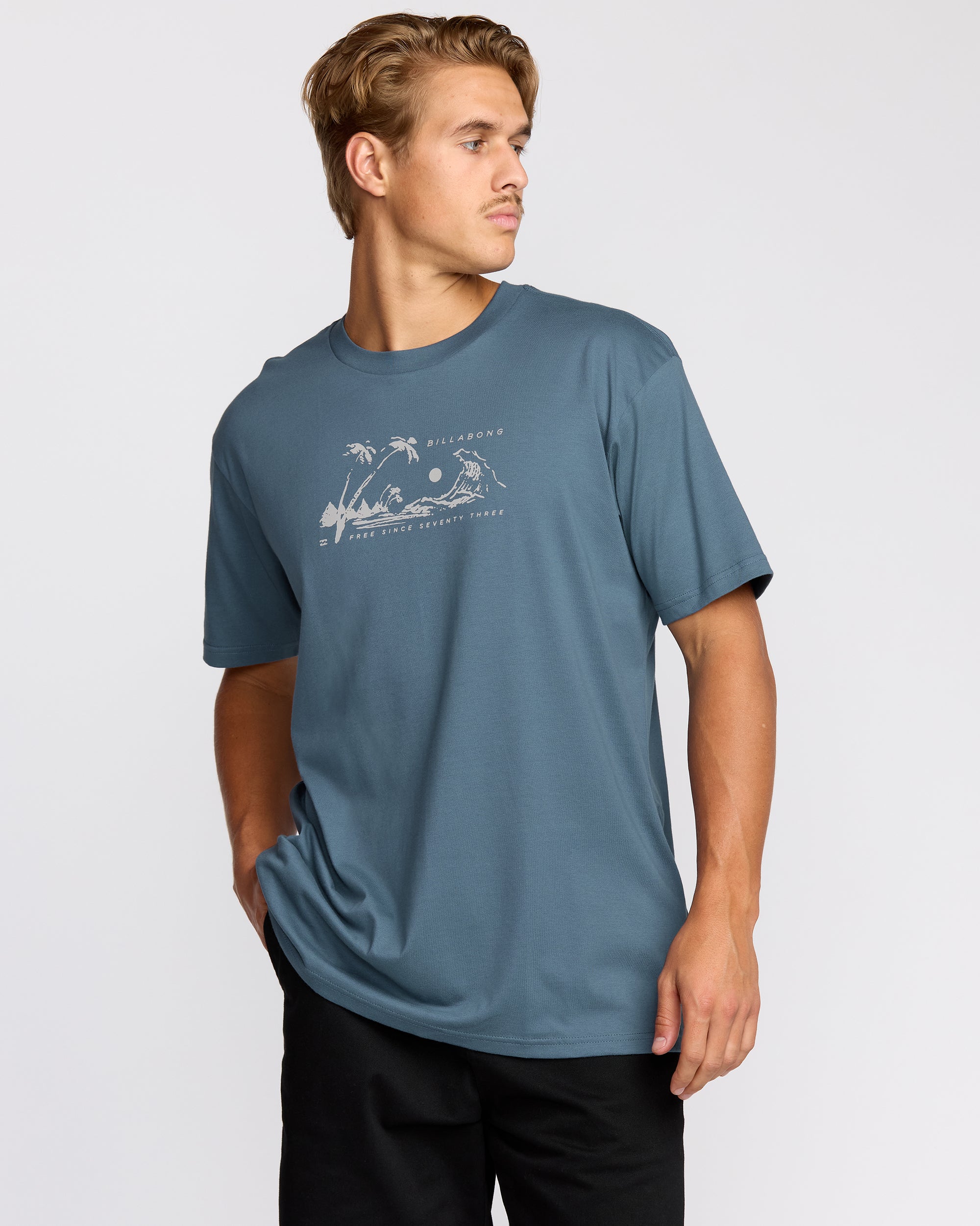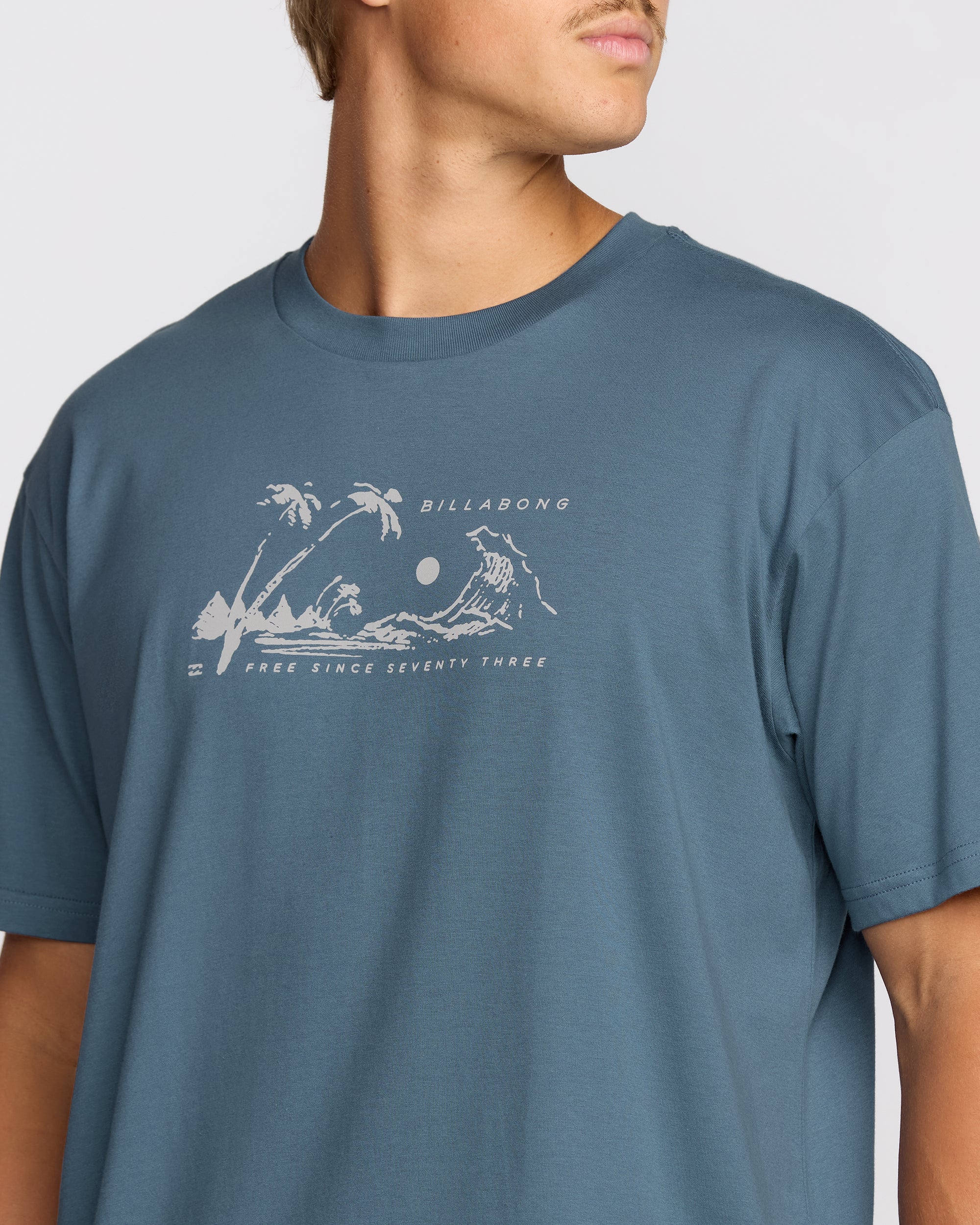 Our premium short sleeve t-shirt brings timeless style to your wardrobe. Crafted from lightweight, ring-spun cotton and softened with a special wash, it’s finished with a classic screen print for everyday comfort. Featured here in the Blue colorway.