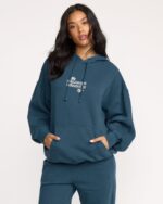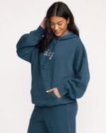 Cozy up in our oversized pullover hoodie, crafted from soft brushed fleece with garment pigment dye for that lived-in feel. The front kangaroo pocket and chest embroidery add laid-back style. Featured here in the Blue colorway.