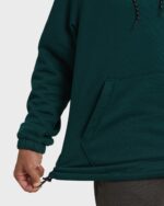 Our throwback fleece sweatshirt brings classic style with modern comfort. The oversized fit and wider shoulders channel vintage vibes, while zippered pouch pocket and bungee cord waistband keep things practical. Featured here in the Green colorway.