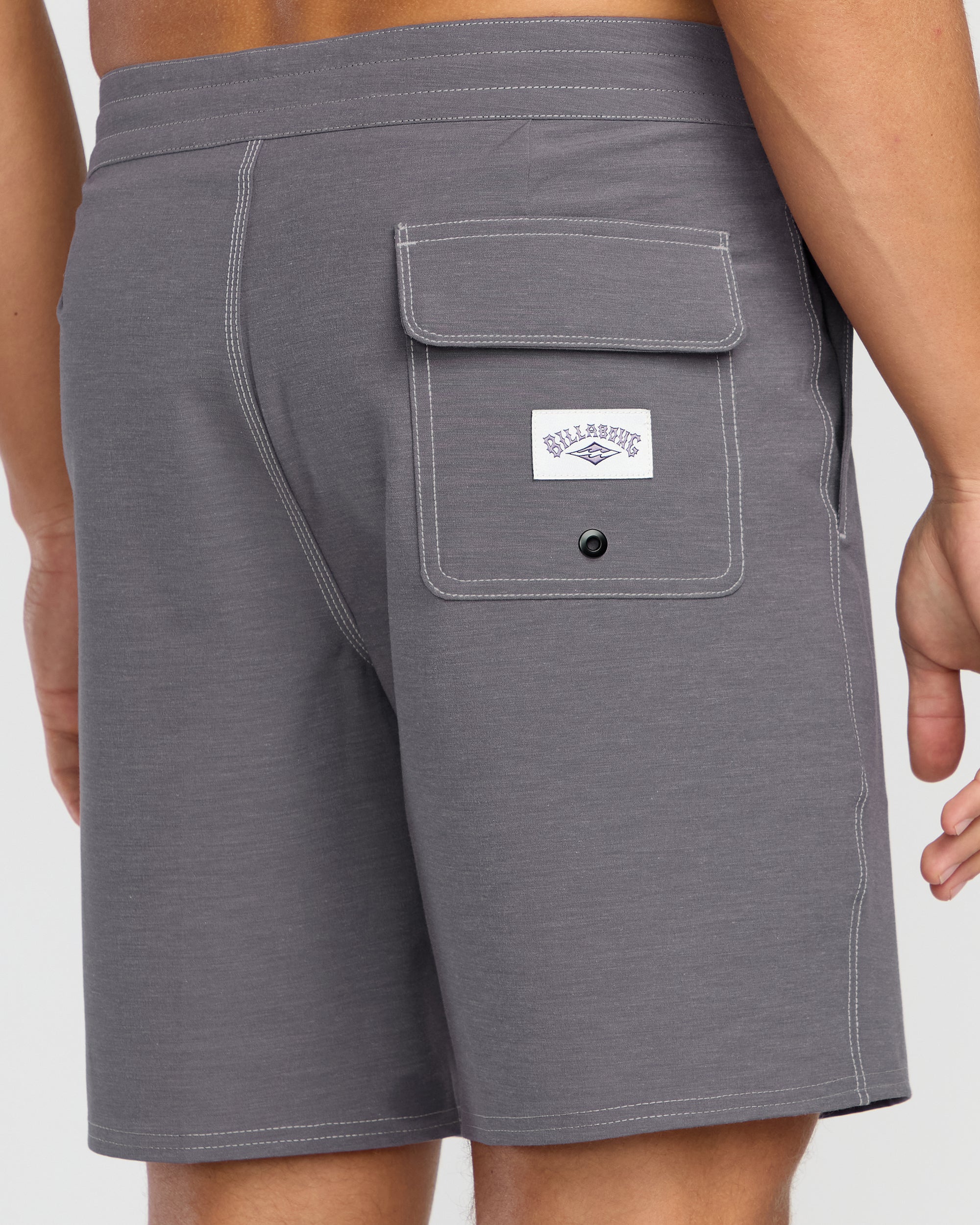 Our Billabong poly cotton stretch boardshorts are built for beach life with a 18″ Lo Tide Fit. Side seam pockets and a back patch pocket offer nifty storage, while the fixed waist ensures a secure fit to catch waves all day. Featured here in the Gray Violet colorway.