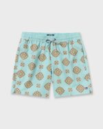 Our comfy layback trunks keep things easy with a 16-inch length and elastic waist. Pro stretch fabric moves with you, while side and back pockets hold essentials for spontaneous summer adventures. Featured here in the Blue colorway.