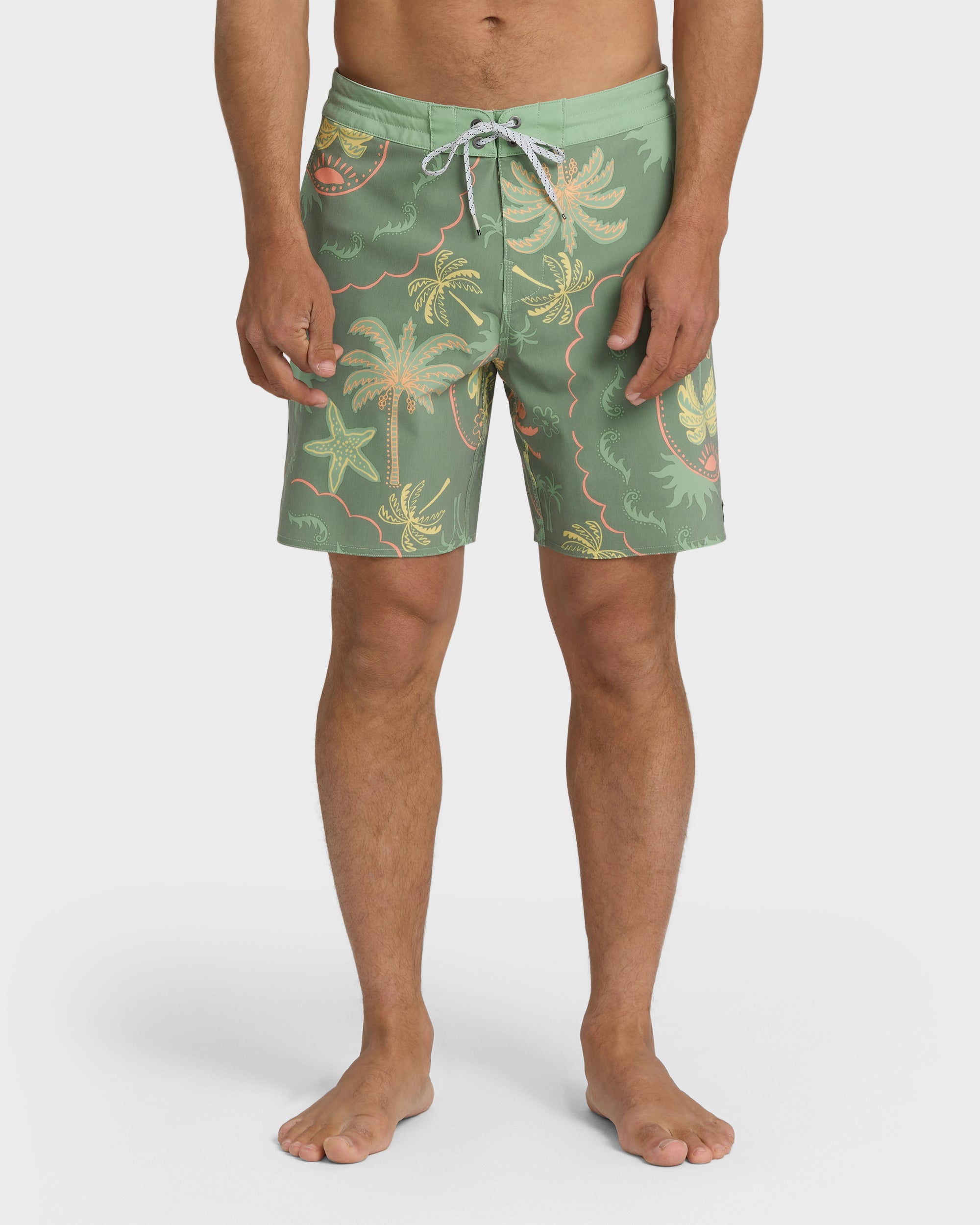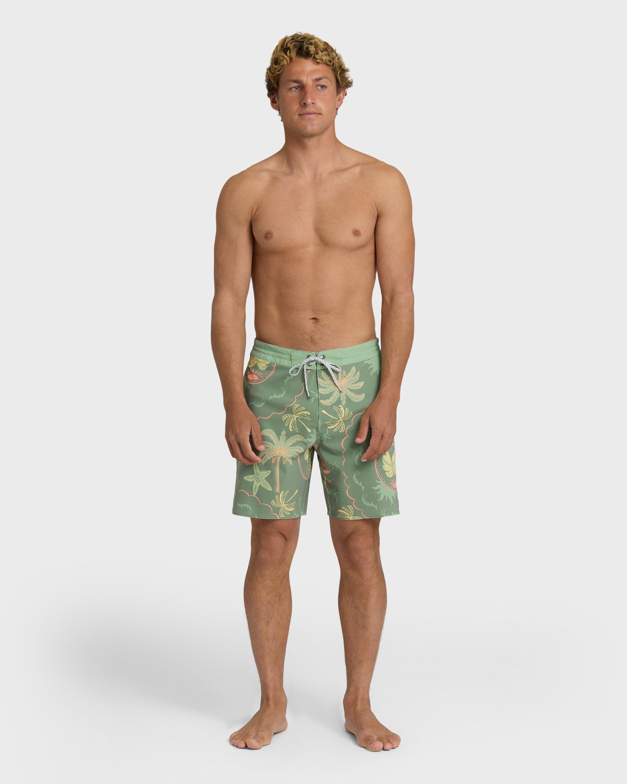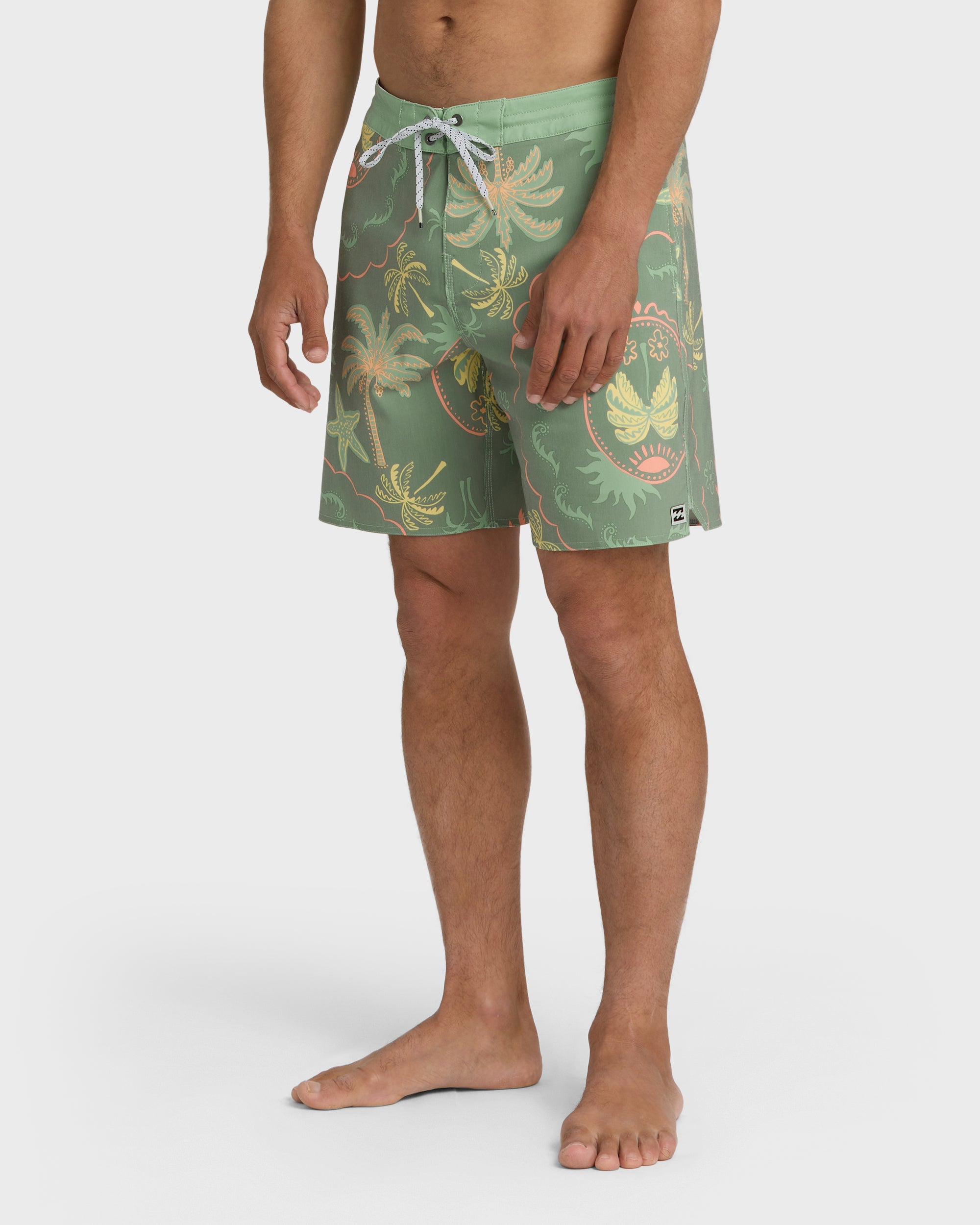Ride the waves in our Good Times Lo Tide Boardshorts featuring eye-catching sublimation prints and convenient side entry pockets. The fixed waist with 17.5″ outseam provides the perfect fit, while our stretchy blend with partially recycled polyester moves with you from beach to boardwalk.