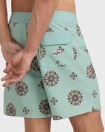 Keep the tubes coming in the Good Times Pro Performance Boardshorts. Engineered with Poly Cotton Stretch / Pro Stretch fabric, these 18″ mid-length trunks maximize mobility. Featuring a back patch pocket, all-over sublimation prints, and woven label branding. Featured here in the Seafoam colorway.