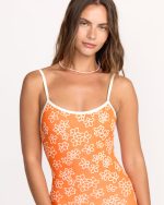 Ready for active beach days, our boyshort surfsuit keeps you moving with adjustable O-ring straps and full coverage. Contrast piping adds style points, while partially recycled materials keep you feeling good. Featured here in the Orange colorway.
