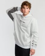 Our heavyweight fleece pullover brings back the classic oversized fit you love, with wider shoulders and longer sleeves. Cotton-blend comfort meets throwback style with contrast panels and chest embroidery. Featured here in the Gray colorway.