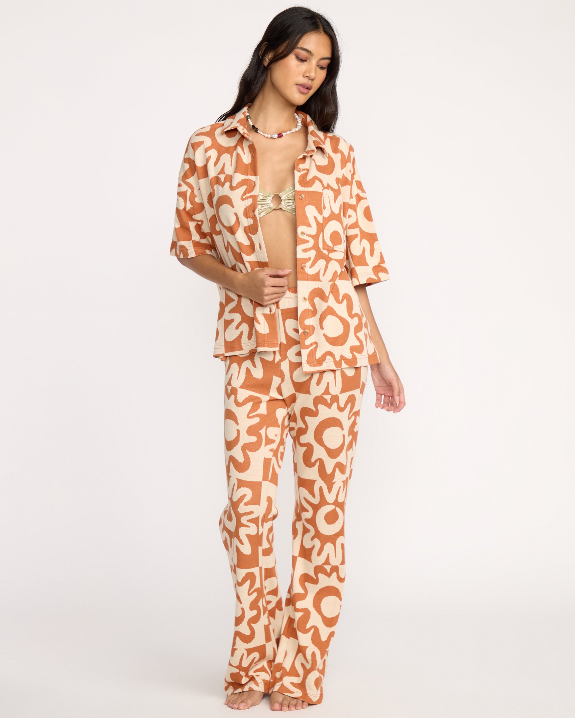 Our cotton jacquard knit tee brings breezy style with a relaxed button-down silhouette. A left chest pocket and metal plate detail add just the right amount of polish to this everyday essential. Featured here in the Orange colorway.