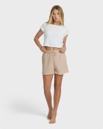 Our Maya Shorts deliver easy comfort in a relaxed fit. The cotton-blend textured fabric pairs with an elastic waistband and adjustable drawcord for the perfect fit. Side pockets add practicality, while a metal plate detail gives these casual bottoms a touch of style.