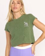 Our cotton crop tee rocks a relaxed fit and eye-catching screen print. The pigment-dyed jersey adds a lived-in vibe, while the classic crew neck keeps things effortlessly cool. Featured here in the Green colorway.