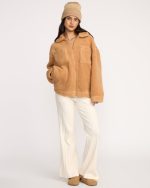 Our cozy sherpa shacket brings oversized comfort to chilly days. Zip up and stuff your essentials in the chest and on-seam pockets, then adjust the cuffs for that perfect fit. Featured here in the Beige colorway.