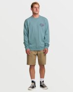 Blending beach style with everyday comfort, this Billabong crew neck sweatshirt in a cozy cotton-blend fleece features a lived-in look. The relaxed “Og fit” and screen-printed chest graphic keep it California-inspired. Featured here in the Washed Blue colorway.