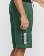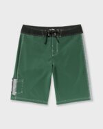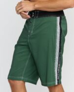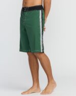 Our signature boardshorts combine mechanical stretch surf suede with mesh-detailed side panels for unrestricted movement. The 22-inch fit features embroidered logos, a handy lower leg pocket and custom trim details. Featured here in the Green colorway.