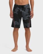 Engineered with three unique performance fabrics, these Straddie Airlite boardshorts deliver on stability, flexibility and comfort. The 20″ performance fit and lightweight Airlite keeps it light, while sublimation prints and logos won’t fade. Secure zip pocket holds essentials. Featured here in the Black Camo colorway.