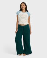 Our cotton-rib wide leg sweaterpants bring laid-back style to your wardrobe. The high-waist design and side stripe detailing create a flattering silhouette, while the drawcord waistband ensures perfect comfort. Featured here in the Green colorway.