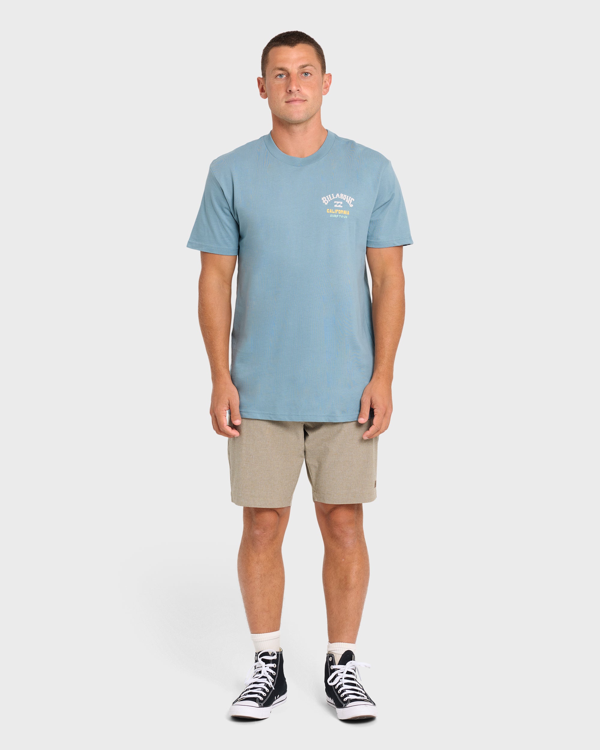 Our premium short sleeve t-shirt brings timeless comfort to your everyday rotation. Crafted from lightweight cotton with screen prints front and back, it’s garment washed for extra softness and finished with a classic core fit. Featured here in the Blue colorway.