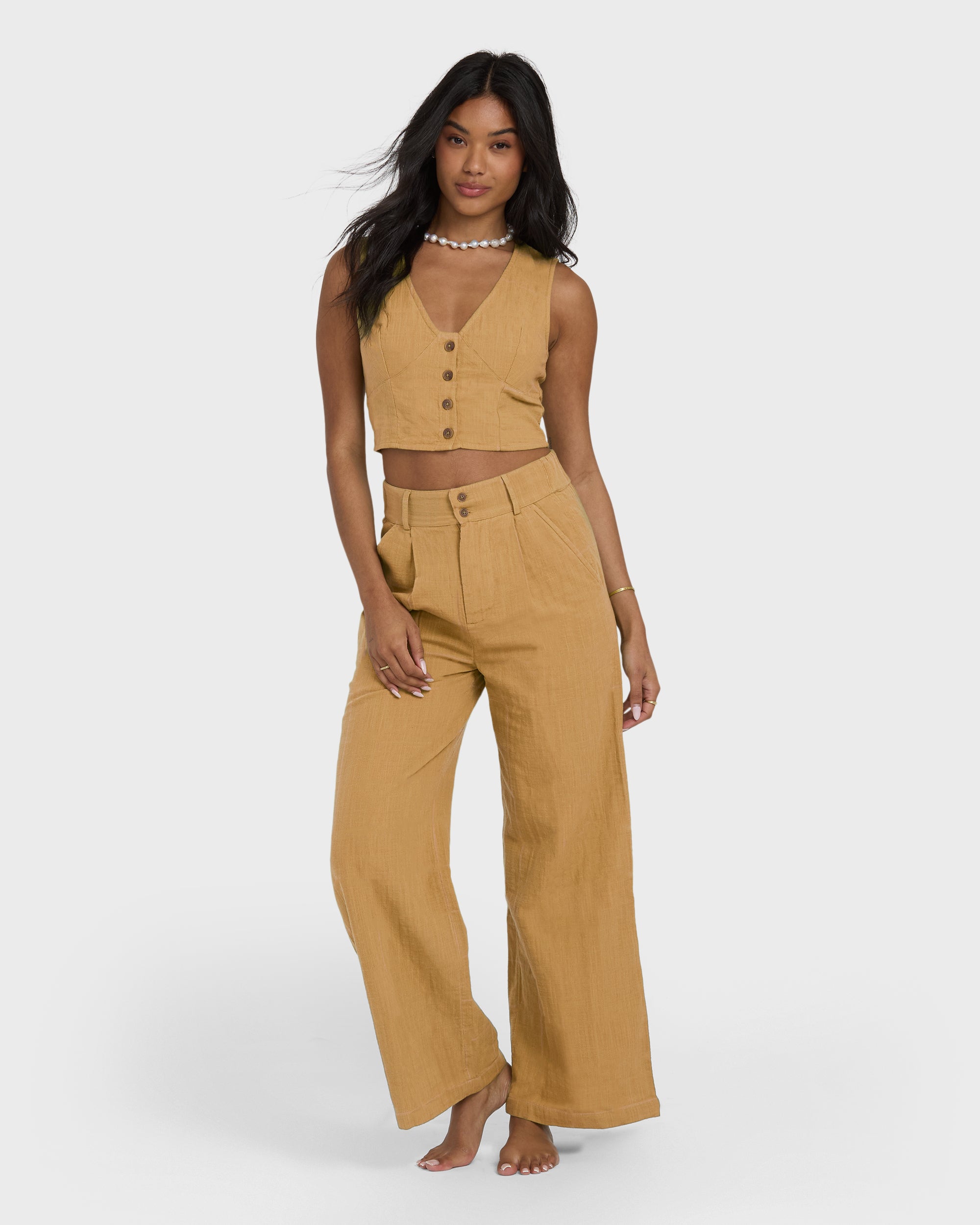 Our cotton cropped vest brings style to any outfit with its double slub gauze fabric and sleek metal plate detail. Button up the front closure for a perfectly tailored fit. Featured here in the Yellow colorway.