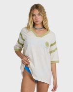 Chill out in this 100% cotton oversized tee with all the right details. Our Team Beach Short Sleeve Knit Top features a flattering V neckline with contrast ribbing that’s echoed at the sleeve openings. The slub jersey fabric feels incredibly soft against your skin, plus a special screen print and metal plate detail.
