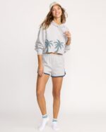 Our soft cotton-blend fleece shorts bring retro athletic style to casual comfort. The classic dolphin cut pairs with an elastic waistband, while contrast binding and hip embroidery add signature style details. Featured here in the Gray colorway.