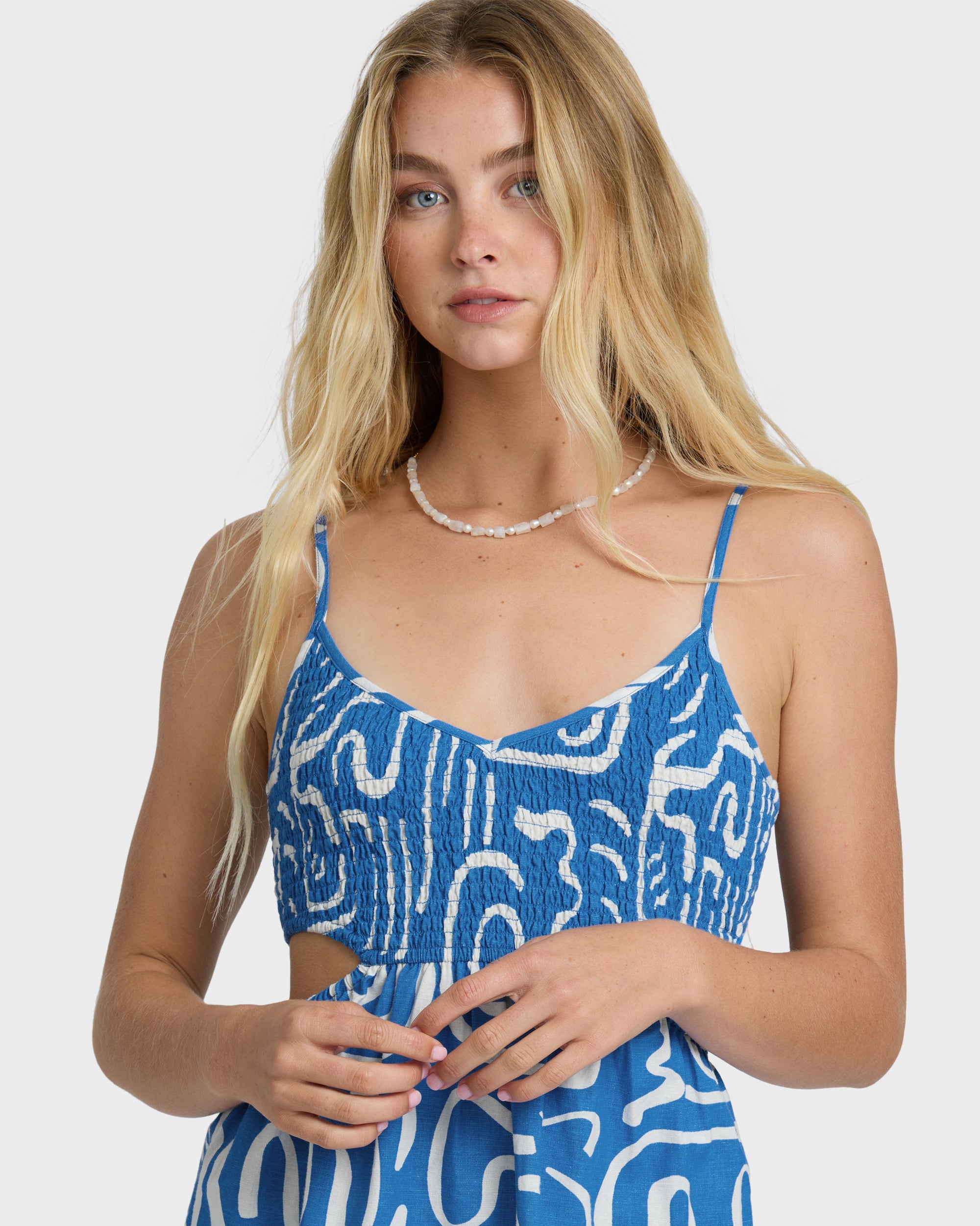 Strike the perfect balance of flirty and feminine in our True Desire Mini Dress. The cotton-linen blend keeps you cool while the smocked bodice offers a flattering fit. Subtle cut-outs at the waist add just enough intrigue to this versatile piece that transitions effortlessly from beach to dinner.