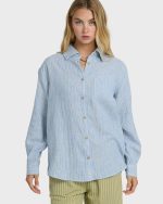 Drift through your day in our Wanderer Printed Long Sleeve Woven Top. This button-down shirt features light cotton double slub gauze with a relaxed, oversized fit that’s perfect for layering. Complete with front patch pocket and metal plate detailing for that laid-back, effortless vibe.